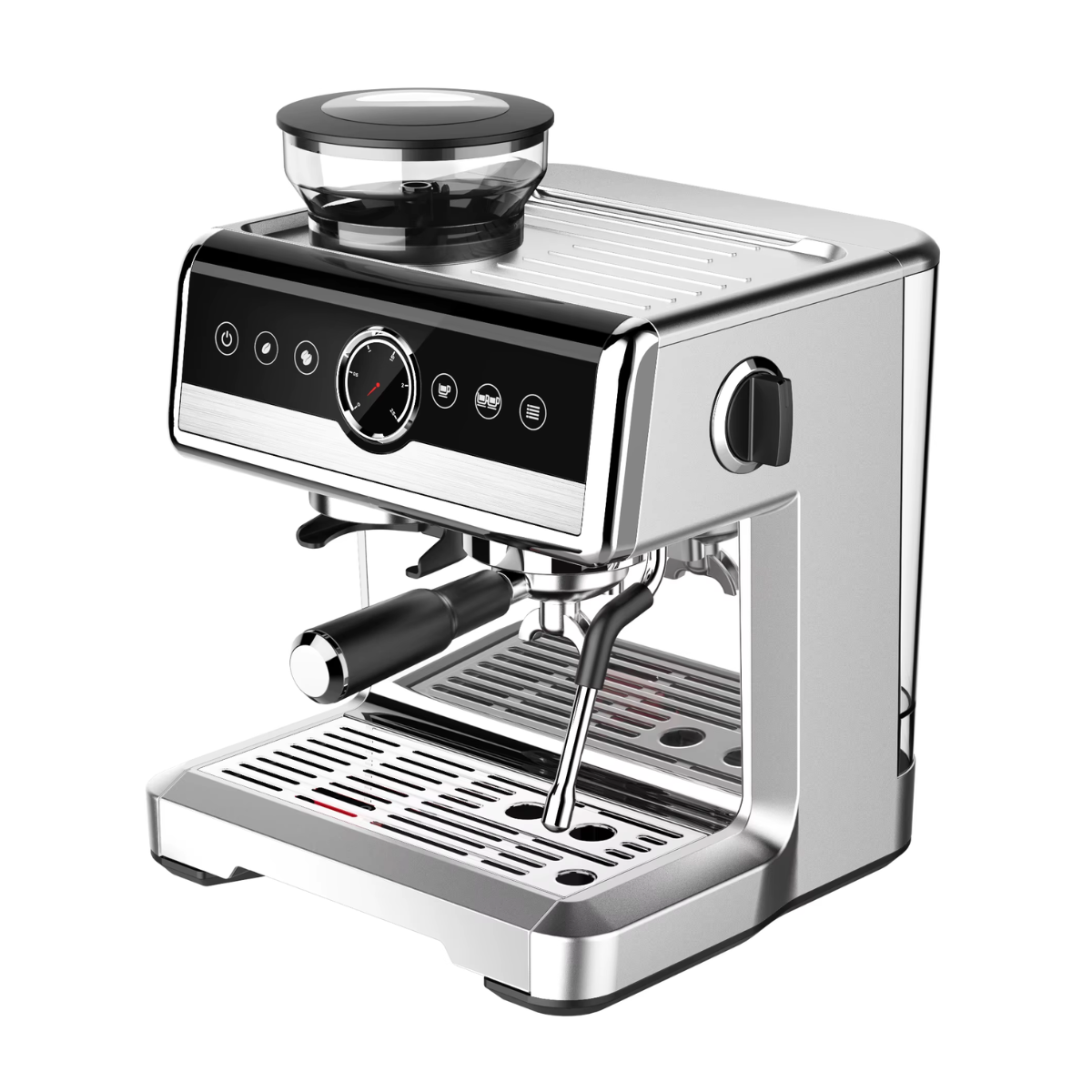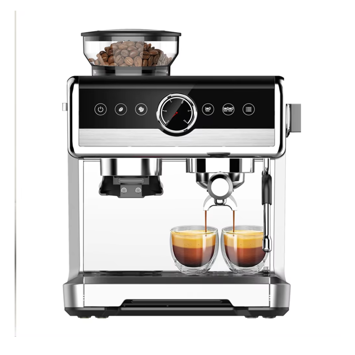 Touch screen sensing function for one cup grind, two cup grind, one cup espresso, two cup espresso, hot water, milk frothing