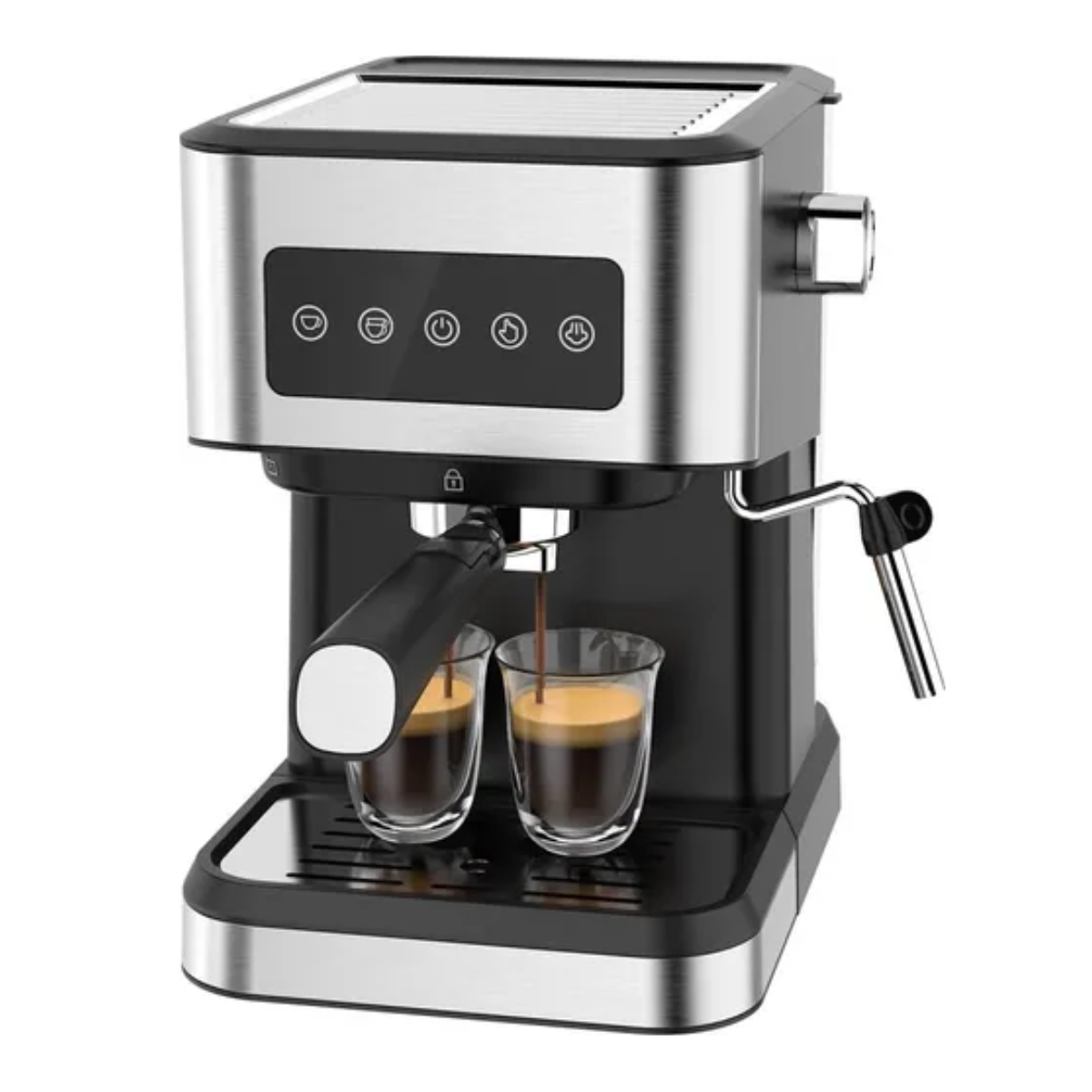 *220-240V. 50/60Hz, 1050W or 120V, 60Hz, 1050W *15 Bar high pressure pump *Can make expresso and capuccino *1.5L detchable water tank *With safety valv can release pressure automatically *Die-casting aliminum alloy boiler *Aluminum alloy filter holder attached with dual stainless steel filter holder attached with dual stainless steel filter to improve coffee quality *Can use for ground coffee *With overheating and overpressure protected device *Detachable frothing nozzle and drip tray for easy cleaning *Durable stainless steel cup mat for coffee cups preheating *With PBC control *FIVE buttons for one cup, two cups, on/off switch, manial control anda steam function *Function for touch sensing *4 PCS/CTN *20GP: 1080 PCS *40GP: 2156 PCS *40HQ: 2600 PCS