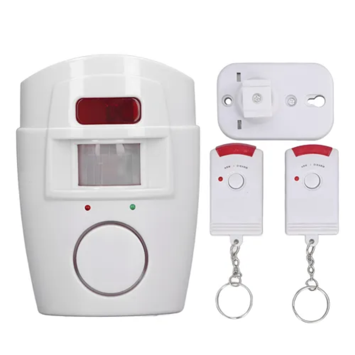 •Alarm volume 105dB •Infrared detector: range from approx. 6m and within an angle of approx. 90° •2 infrared remote controls •Delay of 5 seconds before alarm •Alarm activated after approx. 20 seconds •LED operating mode display